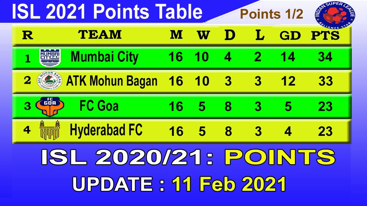 Isl 2021 Point Table Today 11 February 2020 21 Hero Indian Super League Point Table Youtube